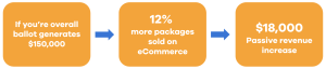 For example, if your ballot typically generates $150,000 and you enable eCommerce, eCommerce could help you reach some of those smaller businesses who haven’t purchased with you yet. Even if you sell 12% more packages through eCommerce, that could equate to $18,000 in passive revenue.